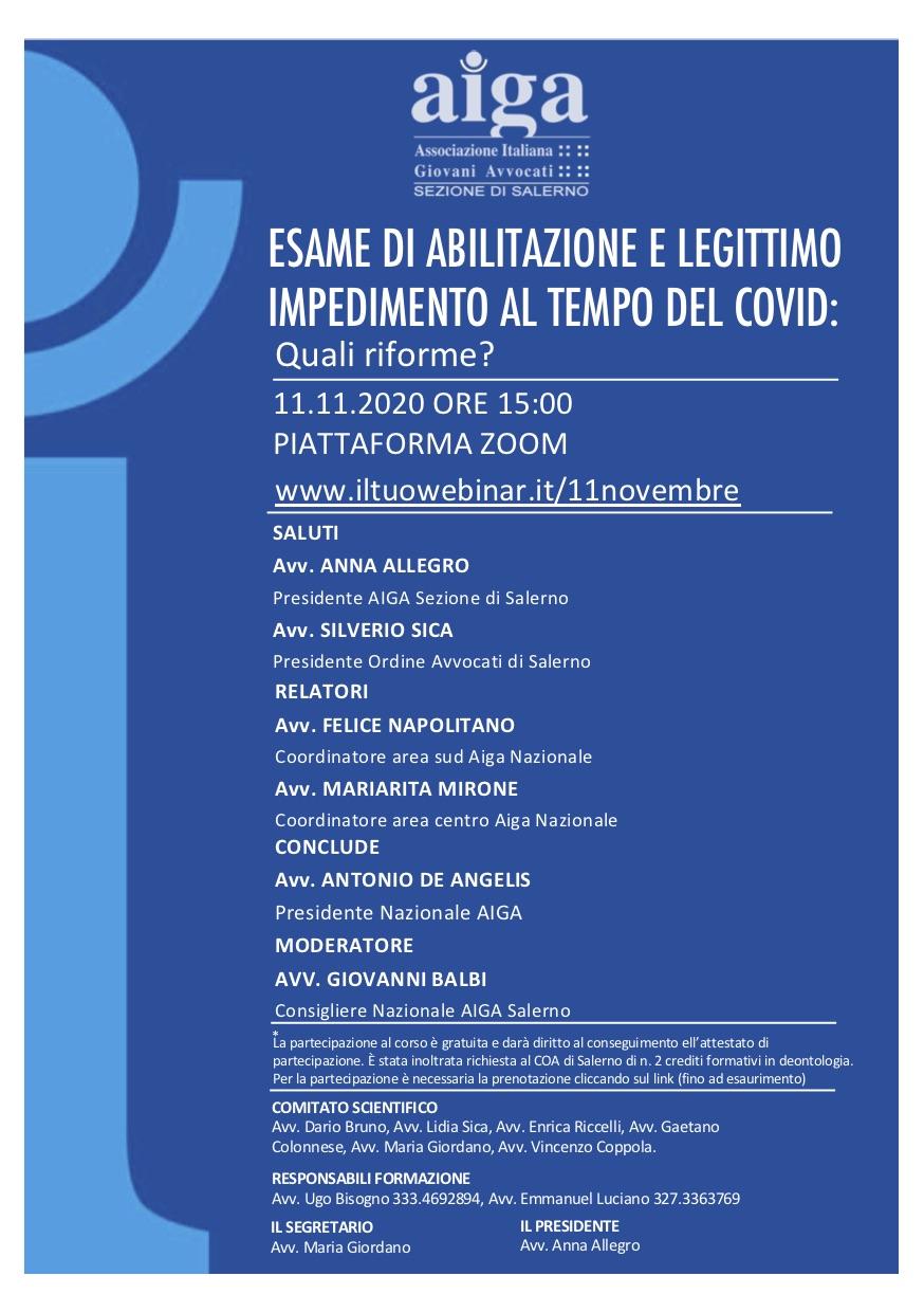 Esame di abilitazione e legittimo impedimento al tempo del covid.