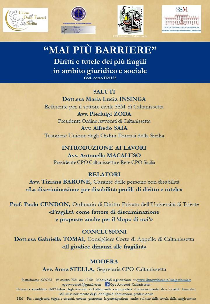 in collaborazione con Consiglio dell'Ordine degli Avvocati di Caltanissetta, Scuola Superiore della Magistratura, Unione Ordini Forensi della Sicilia